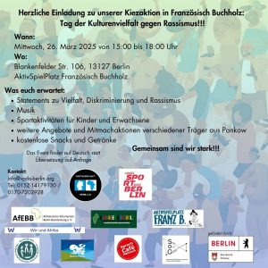 Herzliche Einladung zu unserer Kiezaktion in Französisch Buchholz: Tag der Kulturenvielfalt und gegen Rassismus!